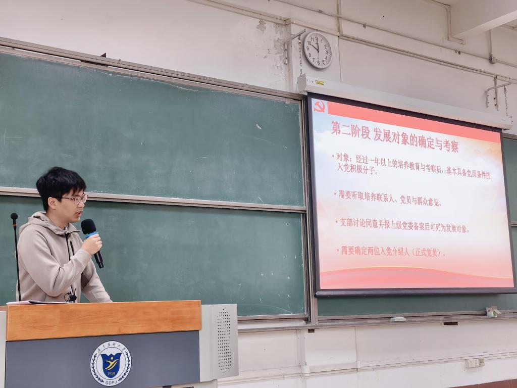 随后,学院专职组织员饶辰欣老师给学员们讲授了入党的条件与程序,对《中国共产党章程》第一章做了重点讲解,对学院发展党员程序做了说明,鼓励学员主动参与党组织活动,自觉接受培养考察,以实际行动向党组织靠拢。