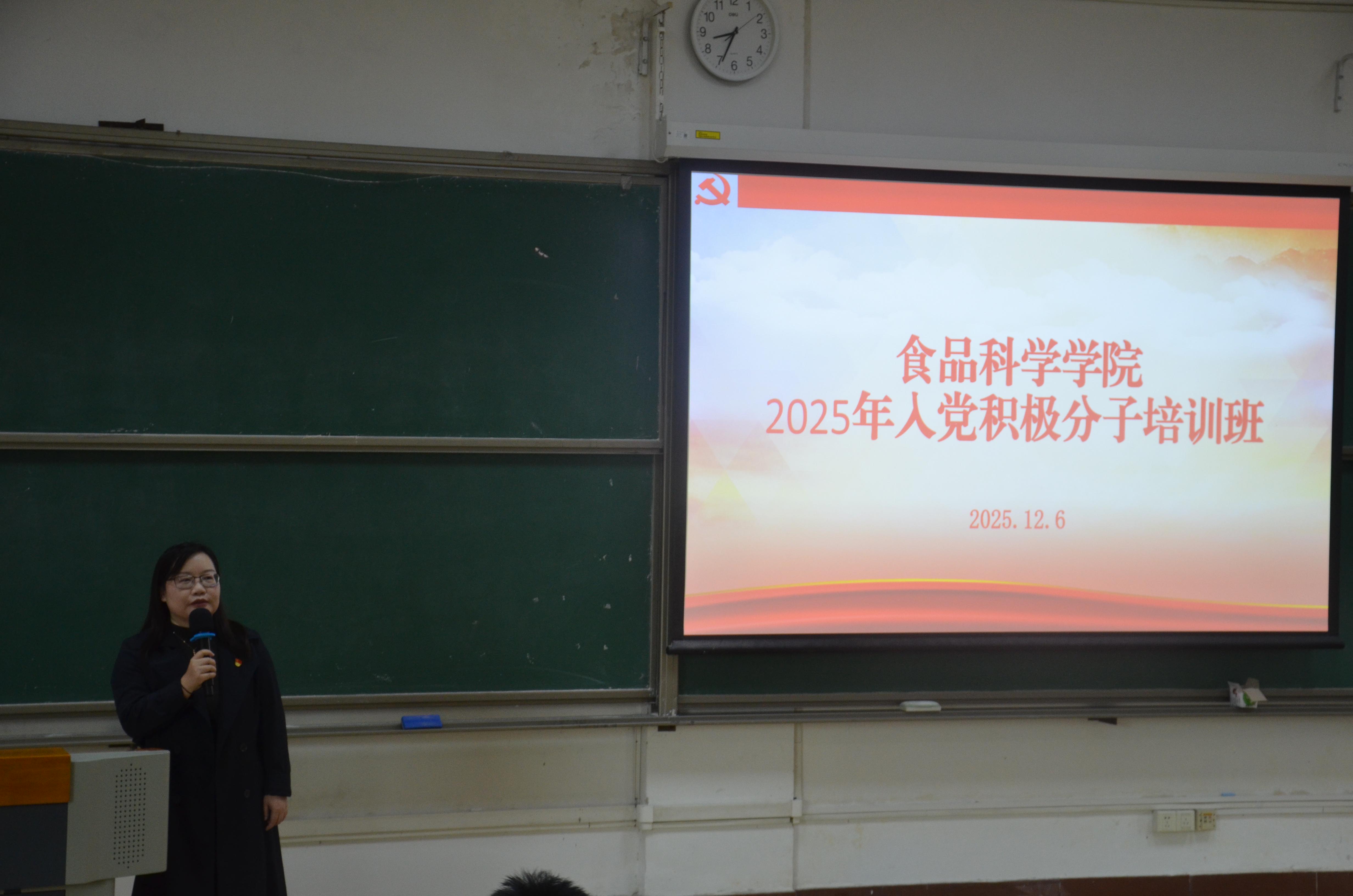 此次入党积极分子培训,是食品科学学院落实立德树人根本任务的具体实践,也是深入贯彻党的二十届四中全会精神,努力培养堪当民族复兴重任时代新人的重要举措。学院将持续强化入党积极分子教育培养,引导广大学员端正入党动机、锤炼综合素养,以实际行动接受党组织考验,力争早日成为合格的共产党员,为食品行业高质量发展和中国式现代化建设贡献青春力量。