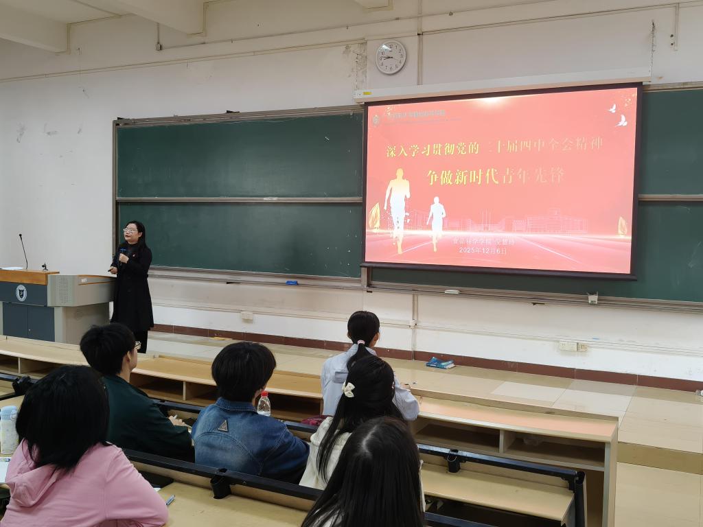 开班仪式后,倪慧玲以“深入学习贯彻党的二十届四中全会精神,争做新时代青年先锋”为题讲授专题党课。她围绕党的二十届四中全会对“十五五”时期发展的顶层设计,结合全会提出的强化食品药品安全全链条监管等部署,勉励学员立足食品科学专业,把学习贯彻全会精神与专业学习、实践探索结合起来,以青春之力守护群众“舌尖上的安全”,在推进食品产业高质量发展中践行青年先锋的使命与担当。